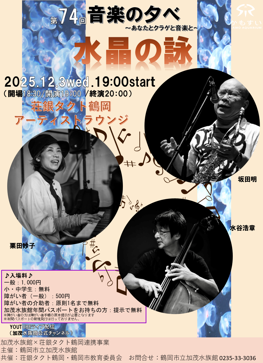リニューアル工事による加茂水族館の休館に伴い、会場を水族館からタクトに移して開催するコンサート。皆様に素敵な音楽のひとときをお届けいたします!