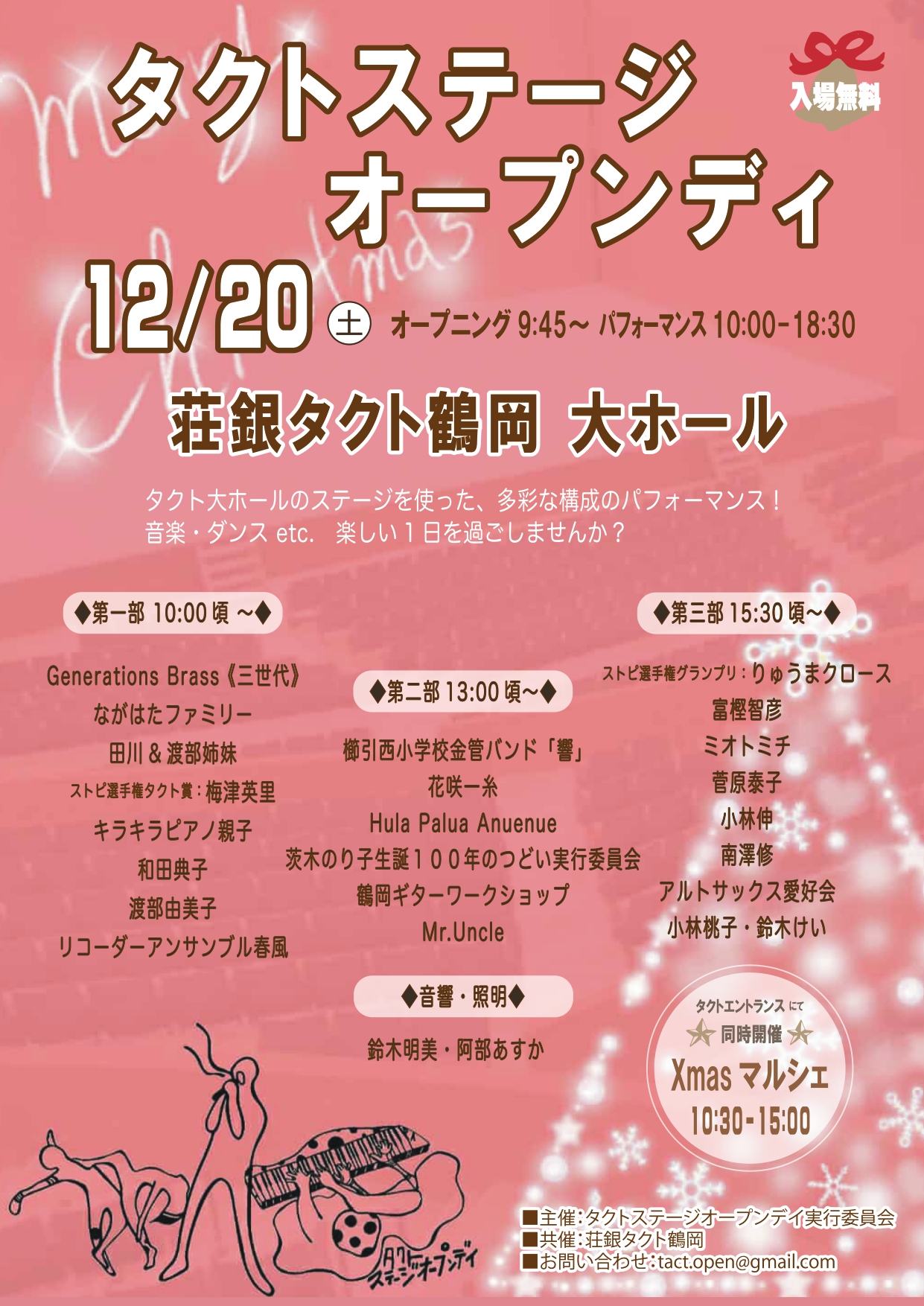 ・入場無料・観覧自由:客席からの声援・拍手も大歓迎!