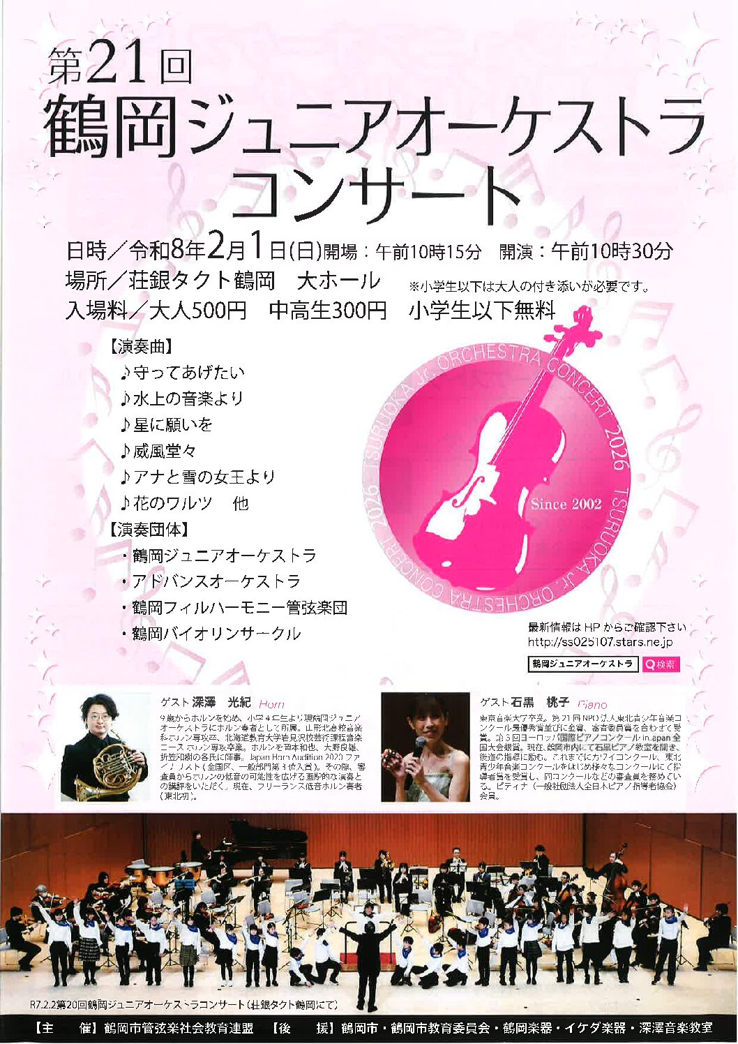 問合せ/鶴岡ジュニアオーケストラ TEL 090-1932-9977(佐々木)