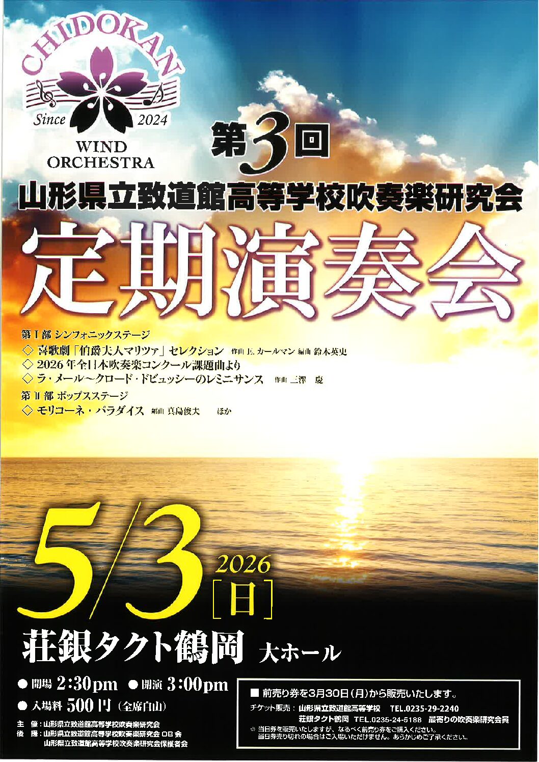 問合せ先/致道館高等学校吹奏楽研究会 TEL 0235-29-2240