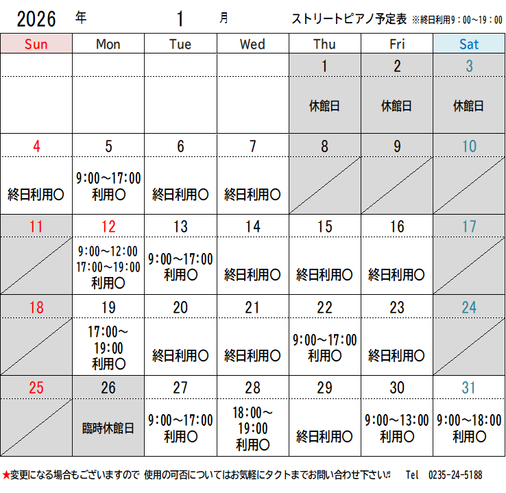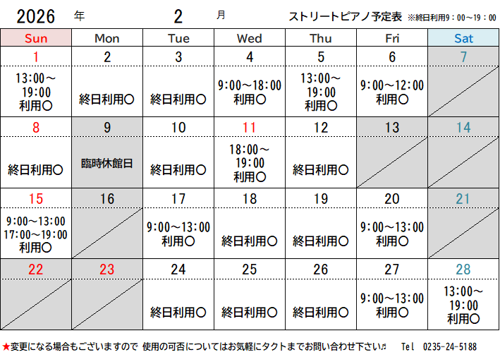 ※利用予定は変更になる場合があります。使用可否につきましてはお気軽に荘銀タクト鶴岡までお問い合わせください。